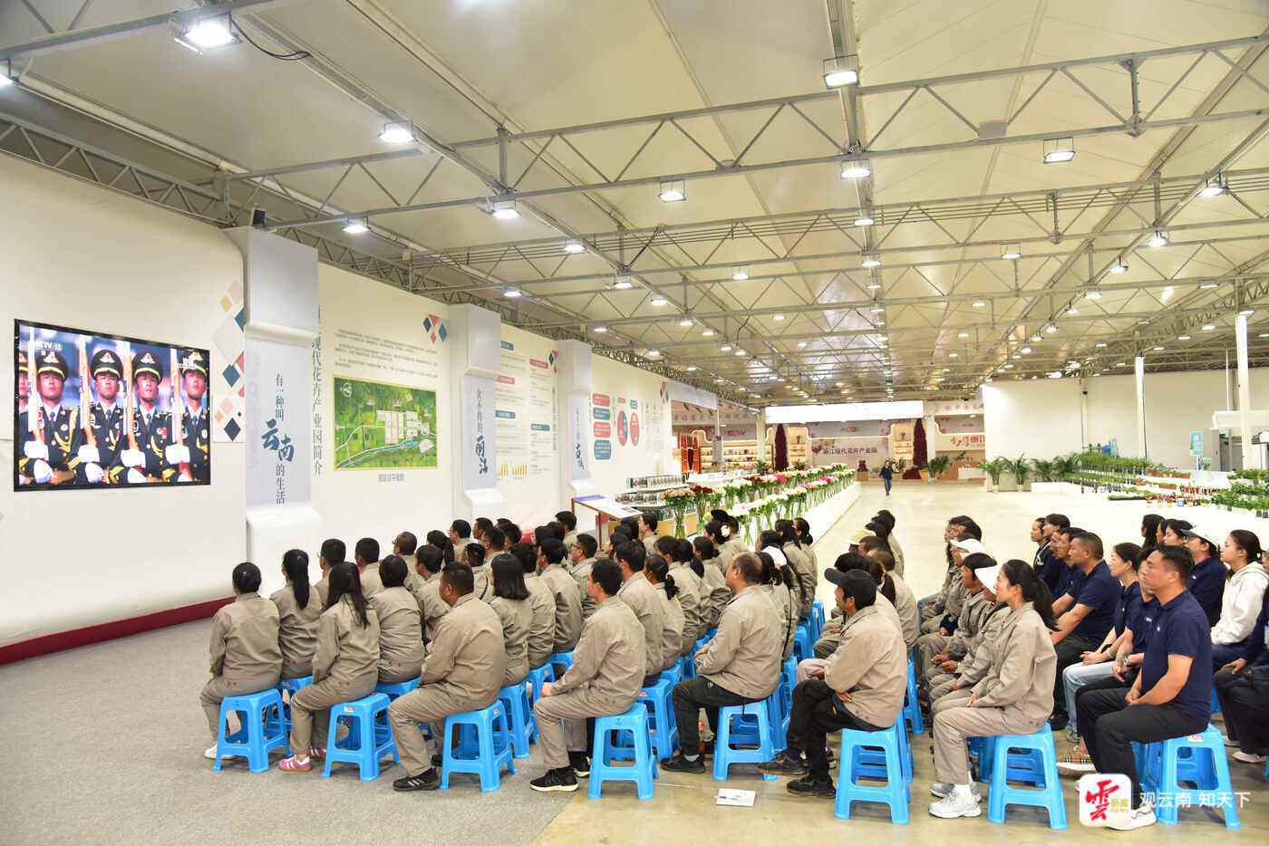 丽江现代花卉产业园职工群众收看大会。丽江市委宣传部 供图