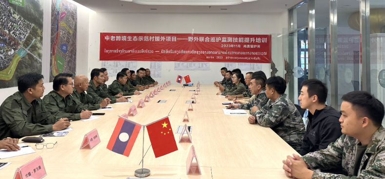 中老跨境生态示范村援外项目——野外联合巡护监测技能提升培训。资料图