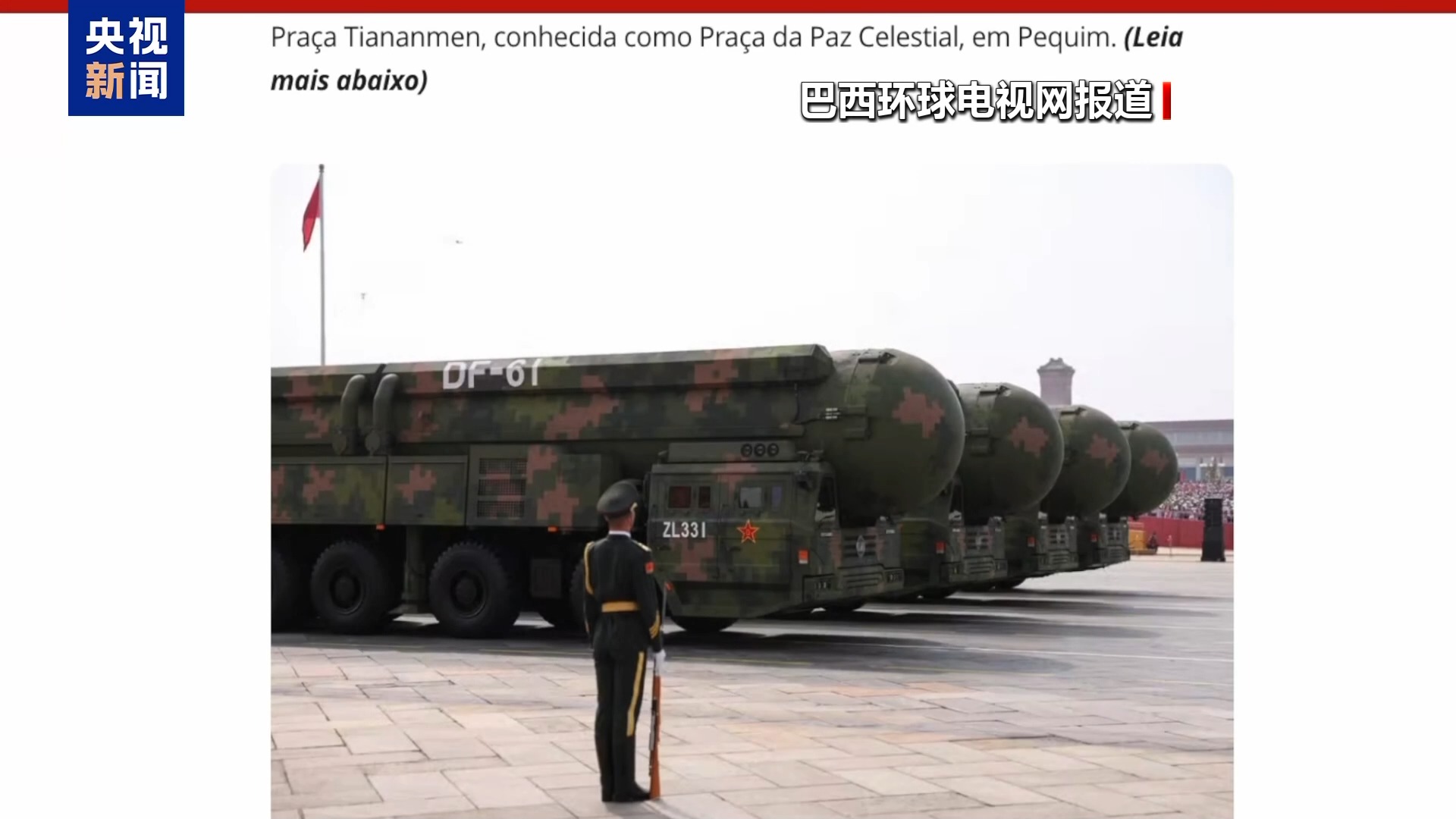 伊朗迈赫尔通讯社3日称,“惊雷-1”空基远程导弹、“巨浪-3”潜射洲际导弹、“东风-61”陆基洲际导弹和“东风-31”新型陆基洲际导弹受阅,展现中国强大的陆、海、空基“三位一体”战略核力量。