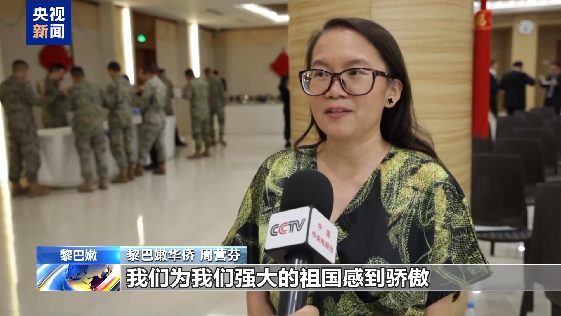 黎巴嫩华侨 地拉娜·司马义:观看了这个纪念仪式让我感到非常骄傲和自豪,作为一名中国人,作为在海外的侨胞,有祖国在我们的背后给予我们最强大的力量,所以我感到非常骄傲和自豪。