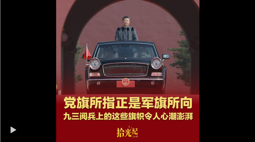 习近平向党旗、国旗、军旗行注目礼、刘老庄连沿用着当年的战旗样式……九三阅兵上的这些旗帜令人心潮澎湃。