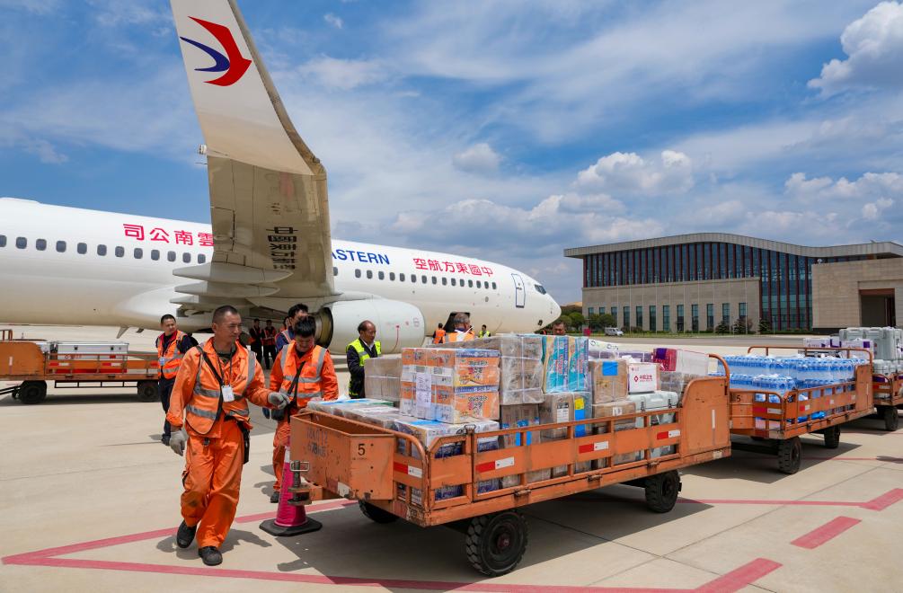 这是2025年4月19日在昆明长水机场拍摄的中国政府援缅卫生防疫队携带的物资。新华社记者 陈欣波 摄