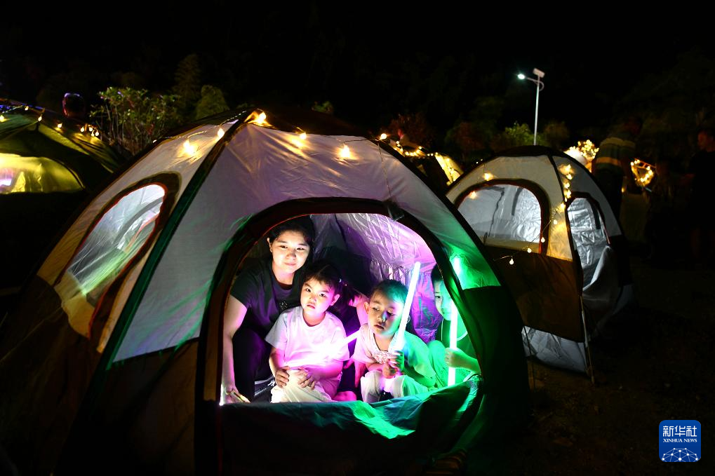 8月29日,在湖北省咸宁市通城县黄龙林场,游客享受露营的乐趣。