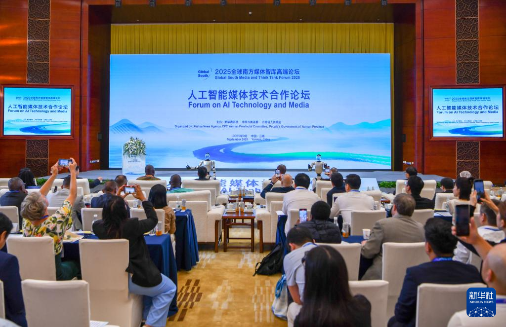 2025全球南方媒体智库高端论坛于9月5日至9日在云南举行,由新华社、中共云南省委、云南省人民政府共同主办。7日上午,人工智能媒体技术合作论坛在昆明举行。(新华社 记者彭奕凯 摄)