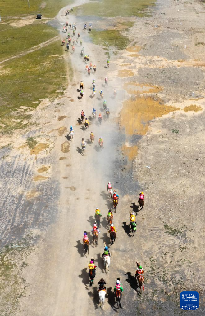 这是9月6日拍摄的恰青赛马节比赛现场(无人机照片)。(新华社 记者丁增尼达 摄)