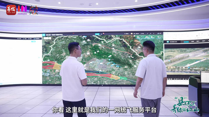 记者通过无人机航拍美丽的滨江生态风光,在天空中竟然偶遇一架正在执行长江巡检任务的无人机。跟随这架无人机,记者来到了南京市民用无人机驾驶航空运行管理中心,看到了“一网统飞”服务平台。