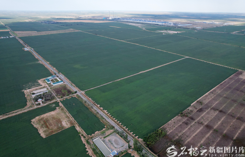 8月10日,俯瞰玛纳斯县包家店镇棉花长势良好的高标准农田。石榴云/新疆日报记者 邹懿摄