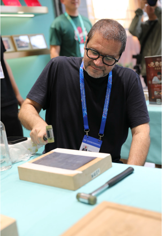 在昆明官渡古镇体验乌铜走银非遗技艺,乌拉圭国家视听传媒署署长、国家电视台台长埃丽卡·霍夫曼·豪赫赞叹:“文旅融合让非遗走出展柜、走入生活。”