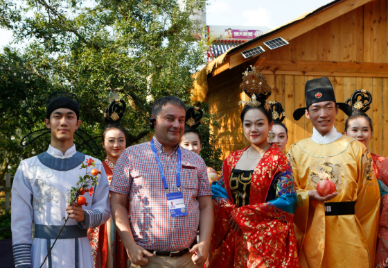 9月8日,与会代表在红河州蒙自市百年古树石榴园留影。新华社记者 陈为 摄