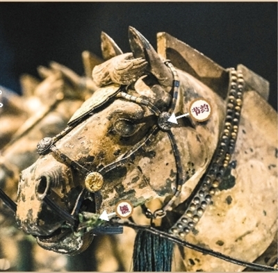 镳的质地有木、铜、银、角等,以铜质占多数,且根据质地和纹饰的不同表示尊卑,是马饰中表示车主身份的部件之一。青铜马镳的设计精巧,通常铸有龙、凤等吉祥动物的图案,以及复杂的几何纹样。南越王墓的西耳室中就出土了众多车马用器,其中便包括四套精美的衔镳。令人瞩目的是,这些铁制衔镳均呈现出两节结构,而与之相配套的镳则设计成S形,长度近30厘米,出土时还精心包裹着丝织物,可见其珍贵与精致。(北京青年报 记者陈品)
