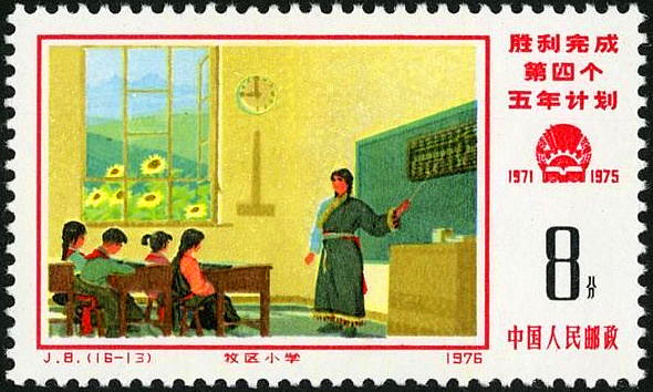 1976年发行的《胜利完成第四个五年计划》纪念邮票第13枚“牧区小学”