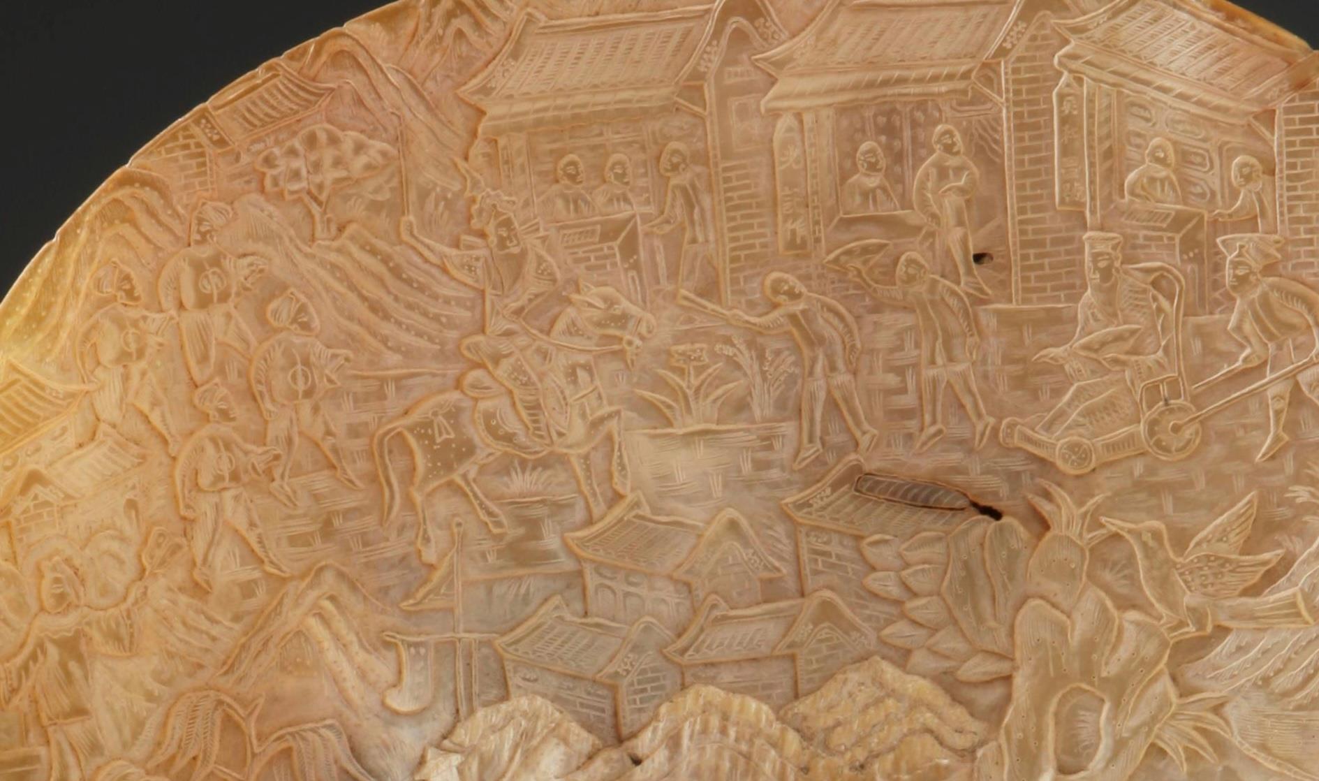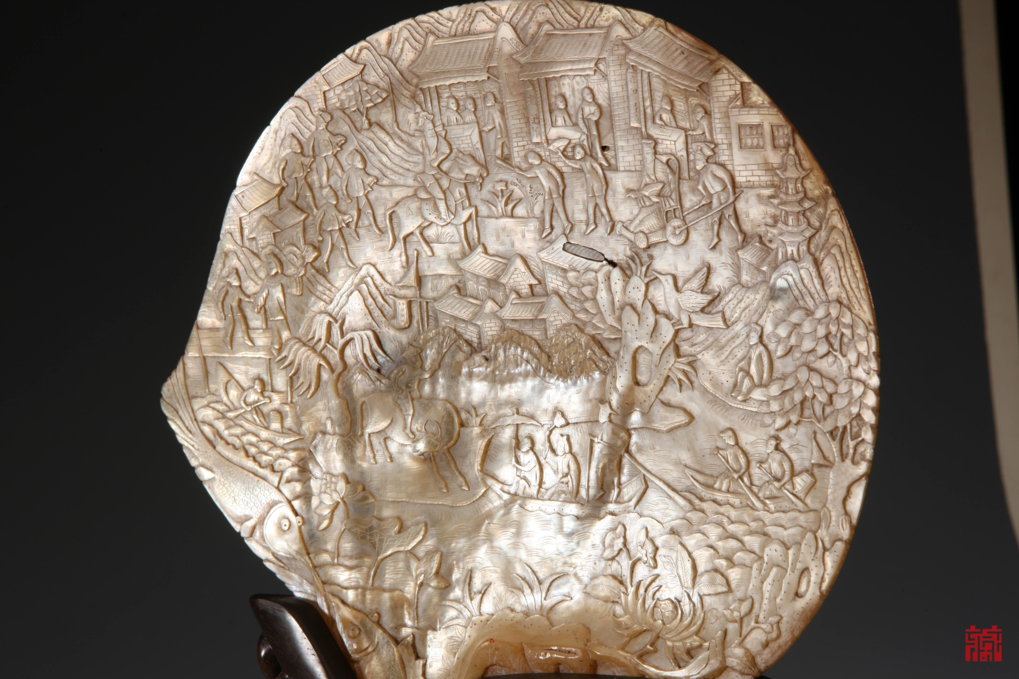 匠人将贝壳磨制、裁切成不同形状的薄片