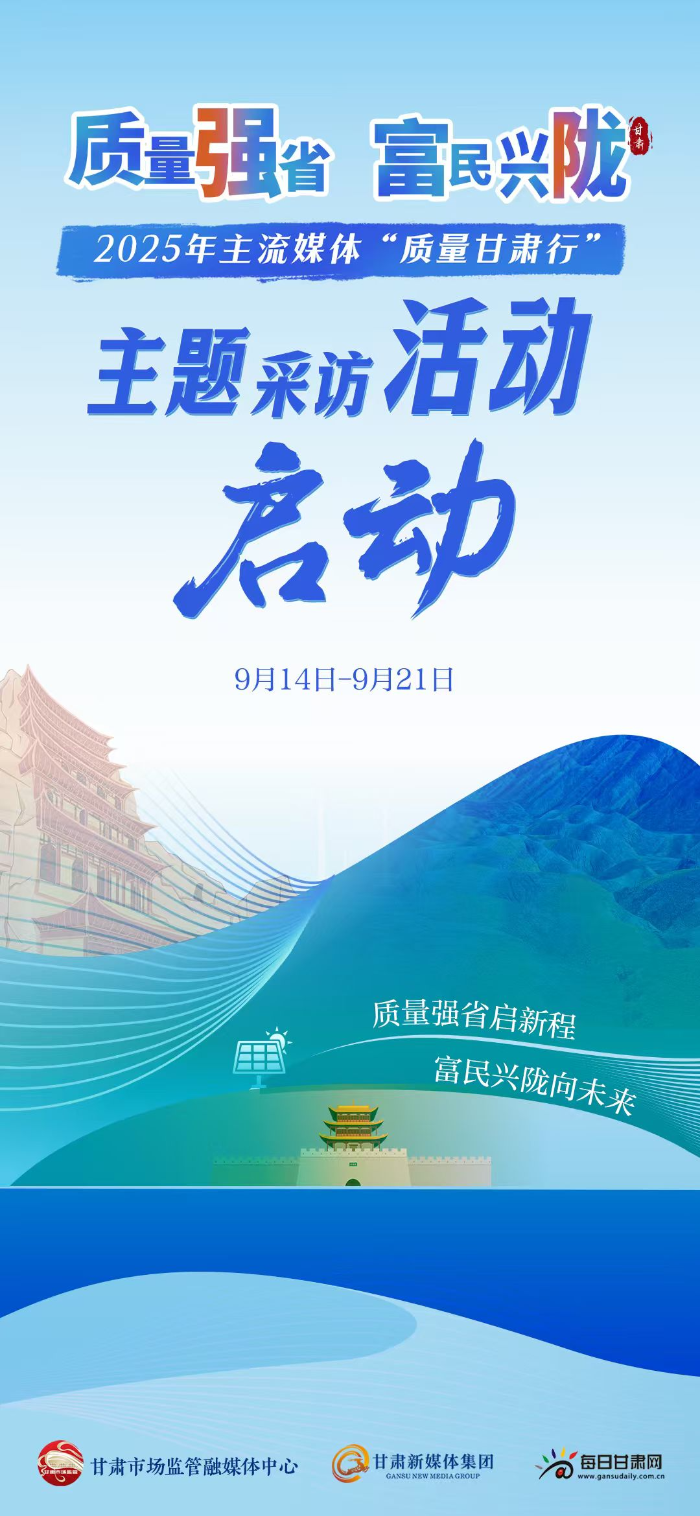 9月14日,“质量强省 富民兴陇——2025年全国主流媒体‘质量甘肃行’”主题采访活动在兰州启动,本次活动由甘肃省市场监督管理局、甘肃日报报业集团主办,甘肃市场监管融媒体中心、甘肃新媒体集团每日甘肃网、甘肃省质量协会承办。