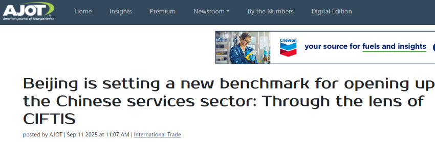 外媒同样对服贸会予以了高度关注。美国运输杂志(American Journal of Transportation)近日报道称,历经十三载发展,服贸会已从行业性展览升级为全球性开放平台,为国际服务贸易树立了新标杆。服贸会顺应服务贸易数字化、智能化、绿色化发展的新趋势,实现了历史性跨越,凭借高度的专业性和开放性,成长为真正国际化、开放化的平台。与此同时,中国一系列开创性政策成效显著,推动服务贸易开放、优化营商环境,将展会蓝图转化为市场现实。