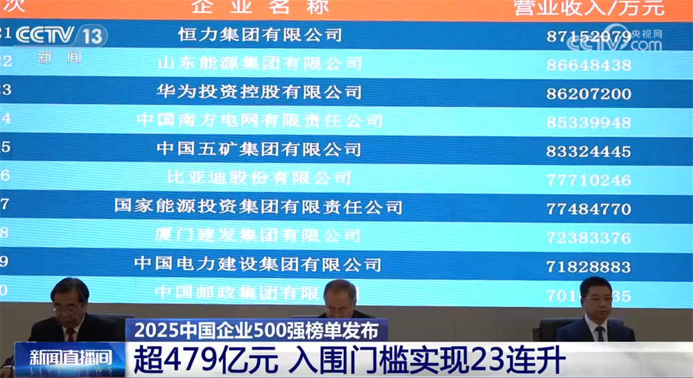 央视网消息:15日,中国企业联合会发布了“2025中国企业500强”榜单。这是中国企联连续第24次向社会发布这一榜单。它就像是中国经济的“晴雨表”,记者也梳理了榜单中的亮点,一起来了解。