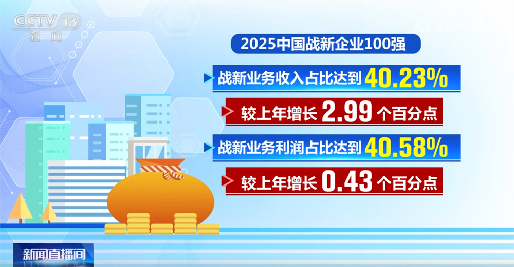 战新业务占比再上新台阶。2025中国战新企业100强战新业务收入和利润占比双双超过40%,分别达到40.23%和40.58%,较上年增长2.99、0.43个百分点。
