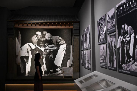 2025年9月7日,在中国国家博物馆,一名媒体人员观看白求恩的照片。新华社记者 金良快 摄