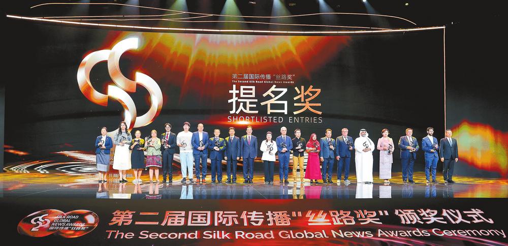 开幕式上,与会领导为第二届国际传播“丝路奖”获奖代表颁奖。 本报记者 雷桐苏 周灿 陈飞 摄