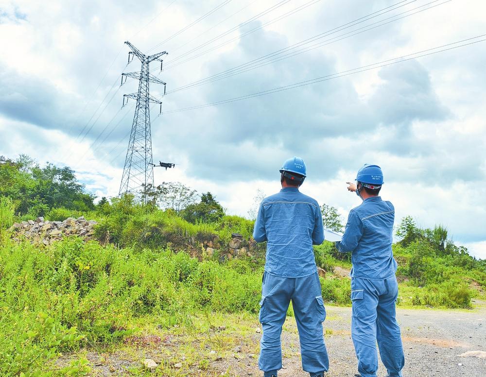 运检人员用无人机开展线路巡视及防汛隐患排查。 徐杨雷 摄