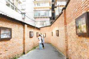 漫步天君殿巷和民强巷,“巷巷美术馆”的标牌映入眼帘,青石板铺就的路面,红砖墙守在两侧,红砖墙上挂着铁艺展框,百米蜿蜒小巷让人感受到颇具年代感的复古情怀。