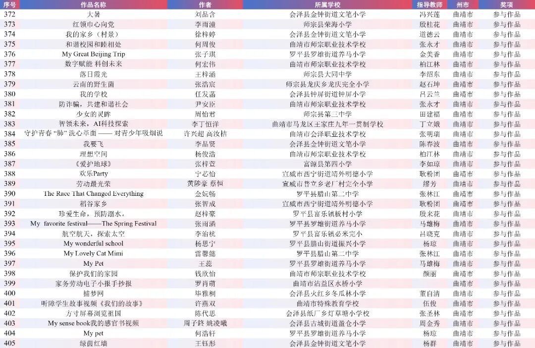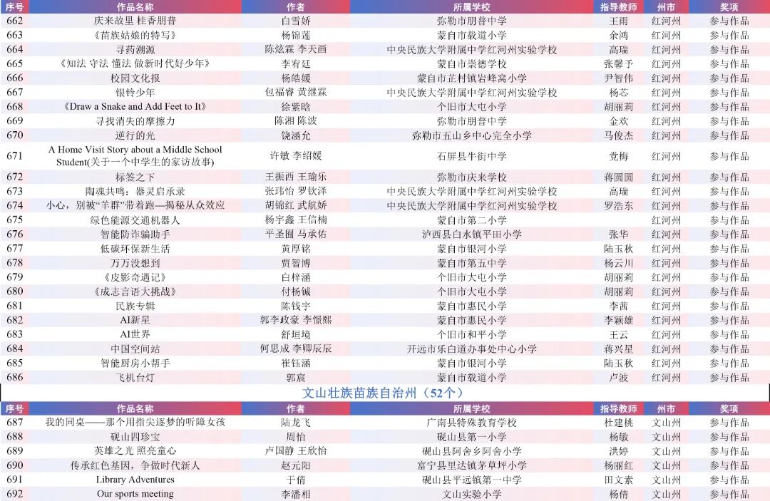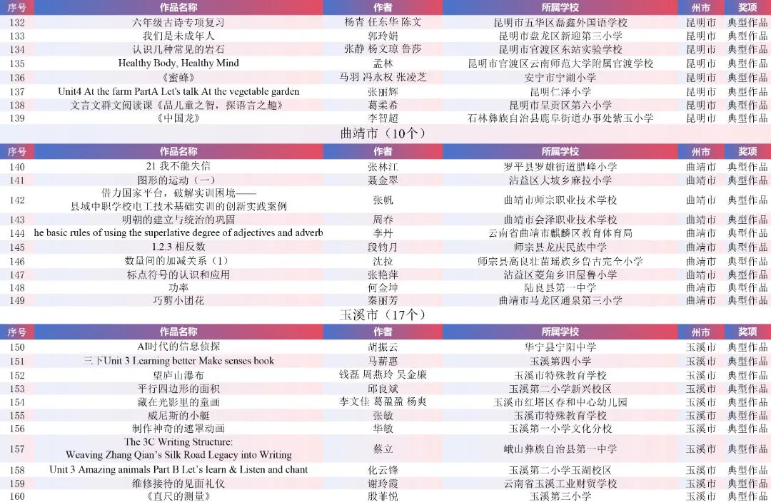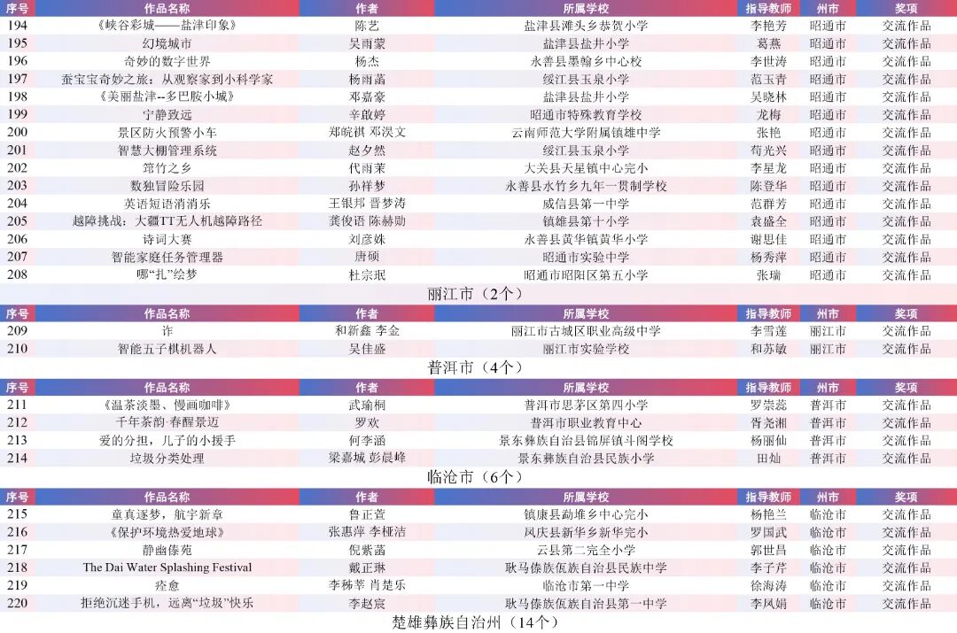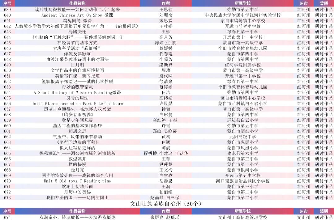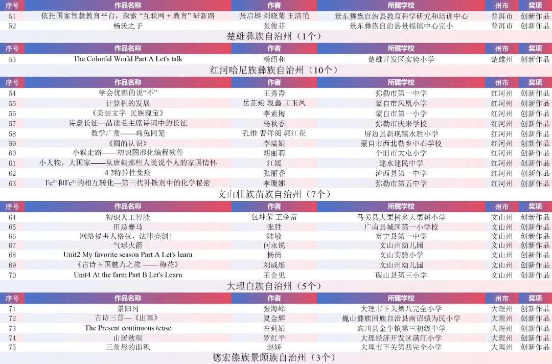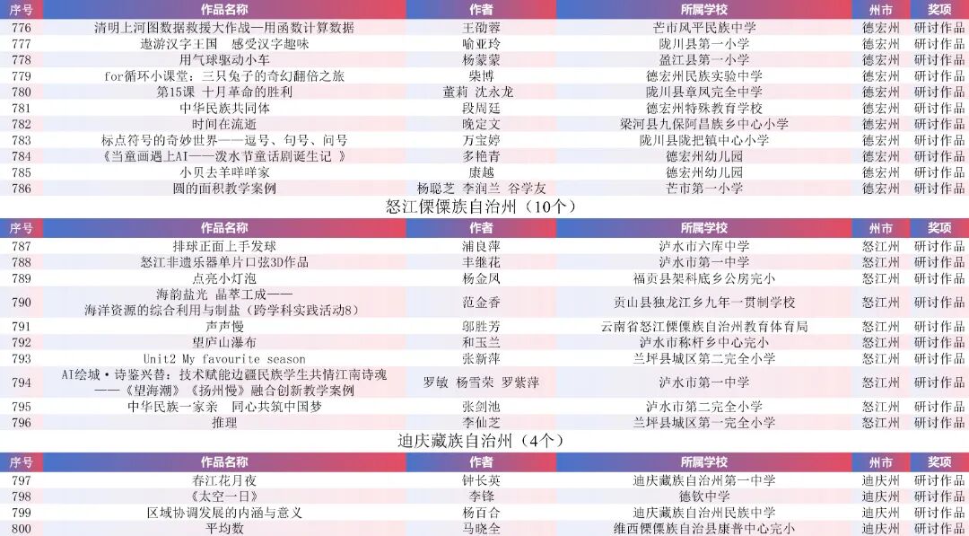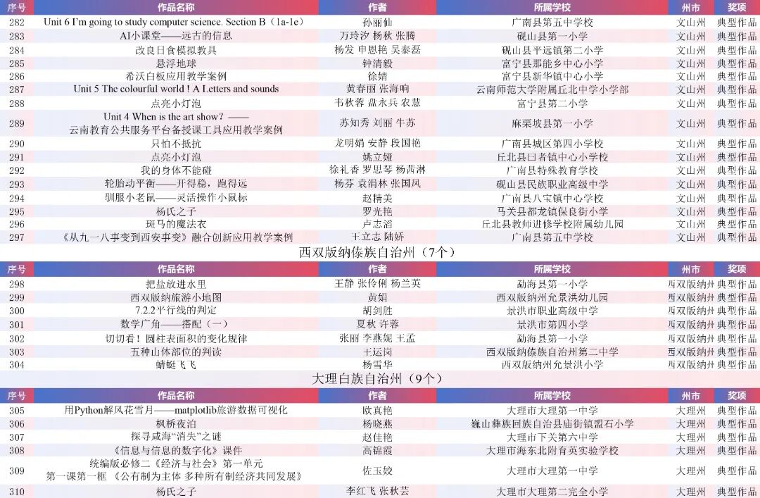 9月15日,云南省教育厅公示了“2025年云南省师生数字素养提升实践活动交流展示名单”。经各州市推荐,专家线上遴选、线下集中复审等,共推荐出教师活动80件创新作品、240件典型作品、480件研讨作品;学生活动80件创新之星作品、240件交流作品、480件参与作品。现将名单予以公示。