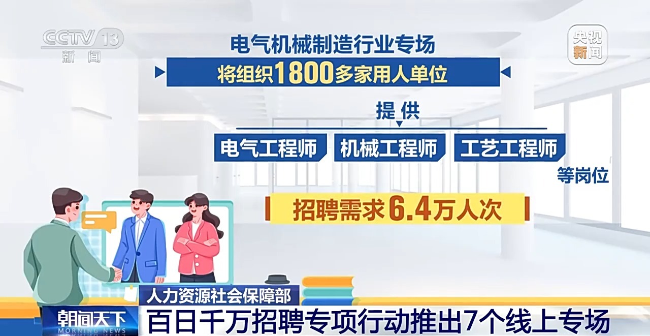 - 电气机械制造行业专场将组织1800多家用人单位,提供电气工程师、机械工程师、工艺工程师等岗位,招聘需求6.4万人次。