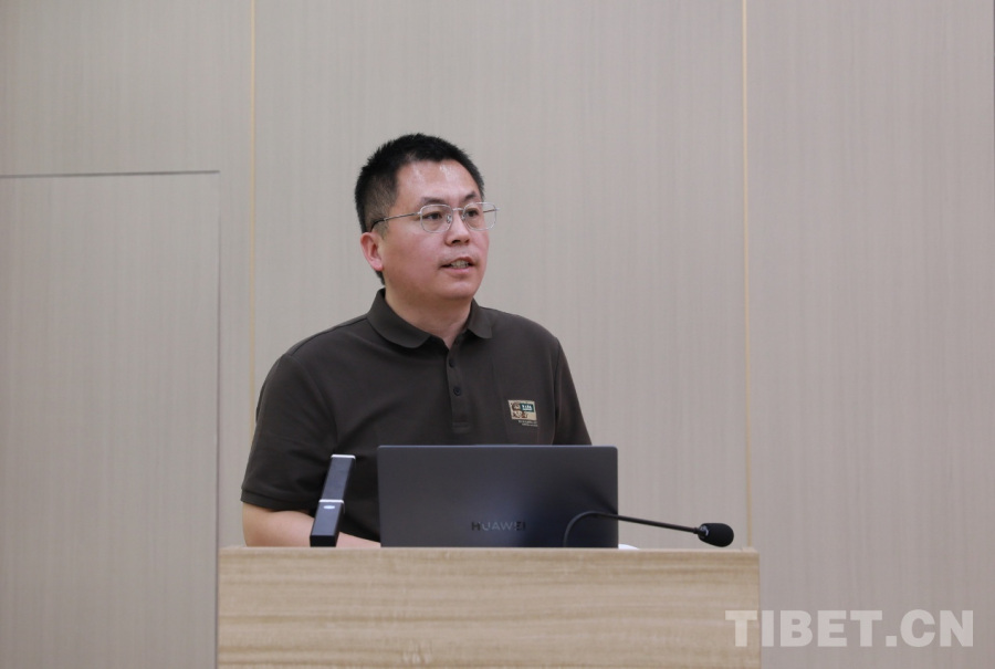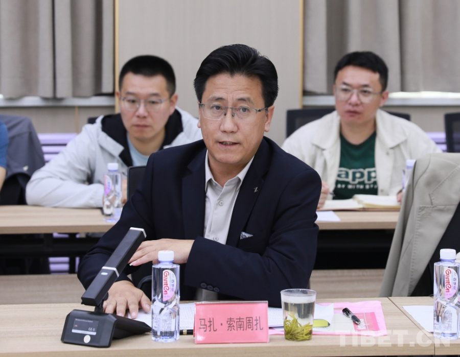 图为马扎·索南周扎在研讨会上做主题发言 摄影:刘莉