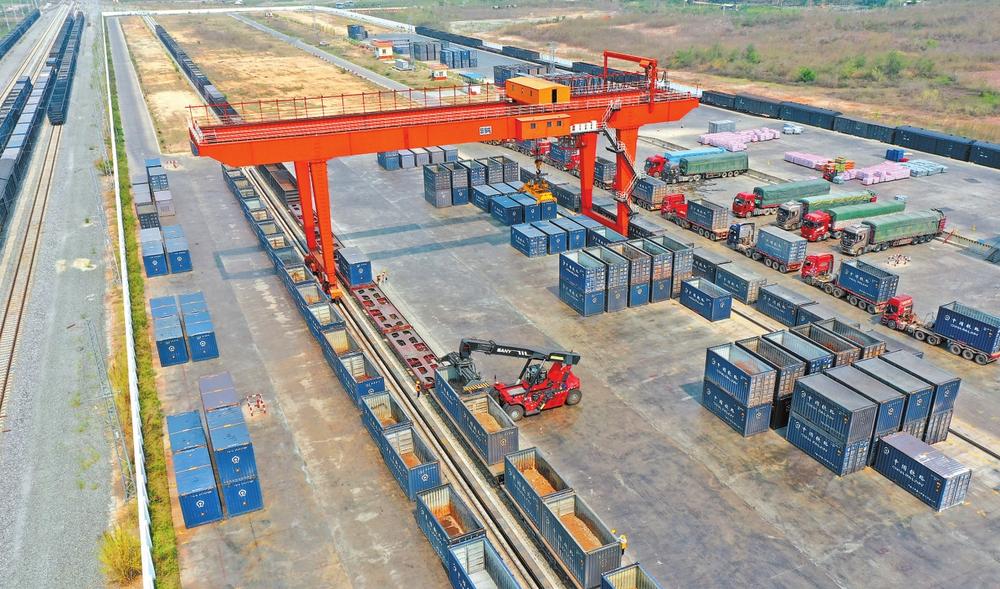 中老铁路野象谷站货场呈现繁忙景象。本报记者 陈飞 摄