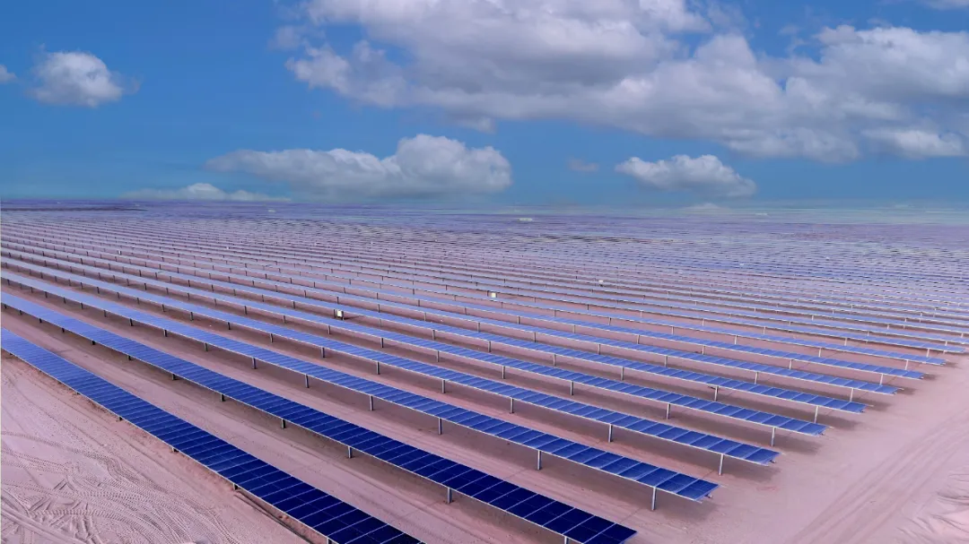 这个项目地处中东沙漠腹地,不仅有着世界上最大的流动沙漠——鲁卜哈利沙漠,更有遮天蔽日的大风沙尘以及高达50°C的极端高温。就是在这样的环境下,团队不到8个月,就快速完成了81余万根桩基的安装,妥妥体现了中国速度。