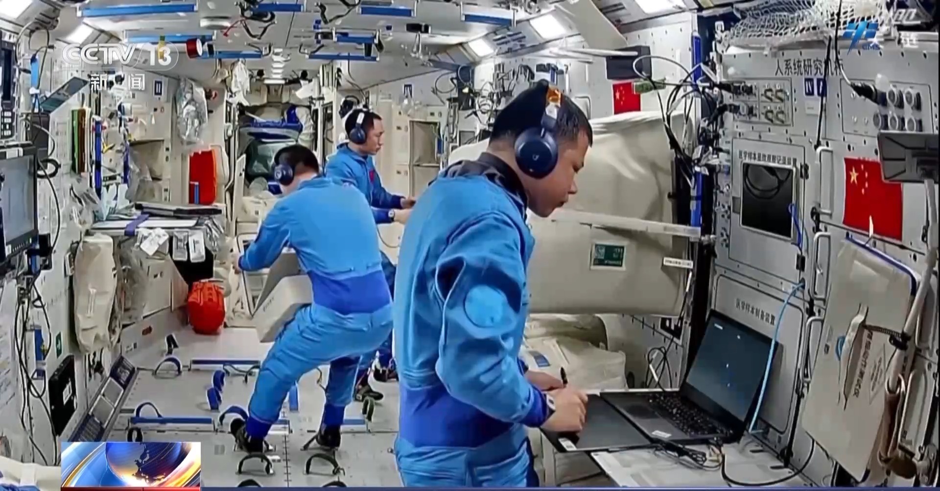 在健康维护与保障方面,乘组按计划进行了心脏、血管超声检查,并利用神经肌肉刺激仪进行肌肉放松与萎缩防护,对抗失重生理效应。