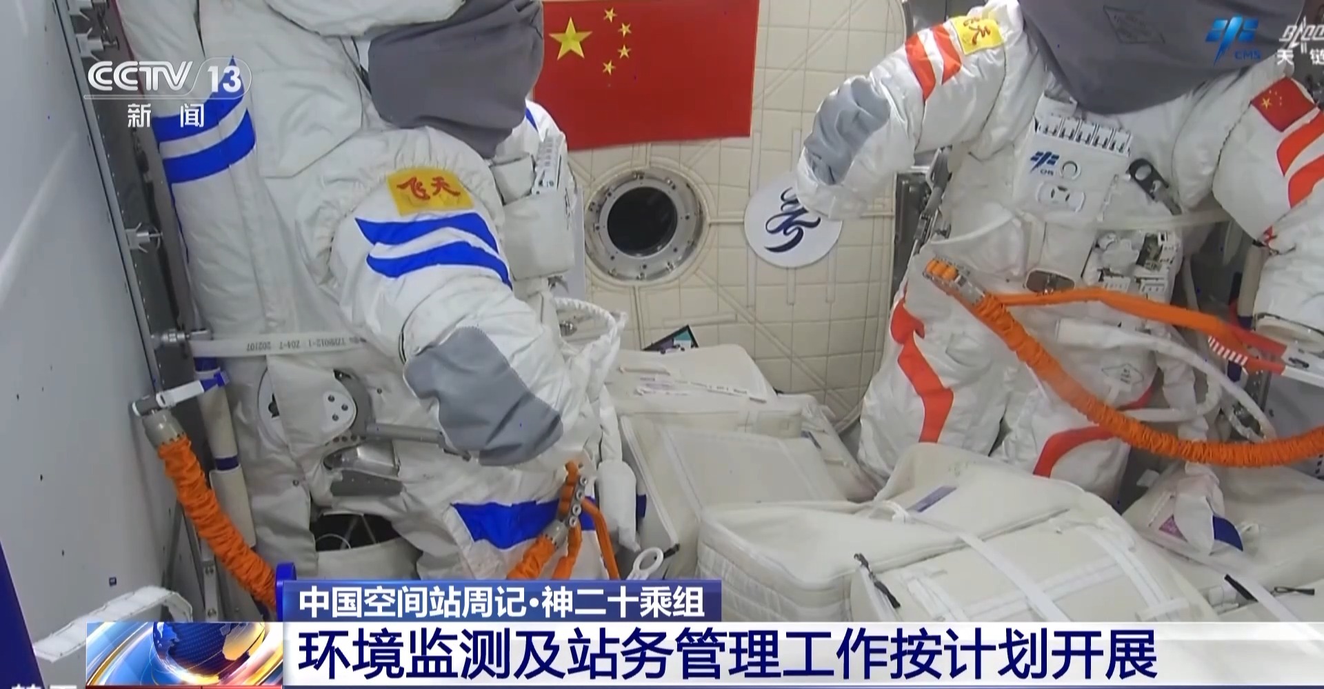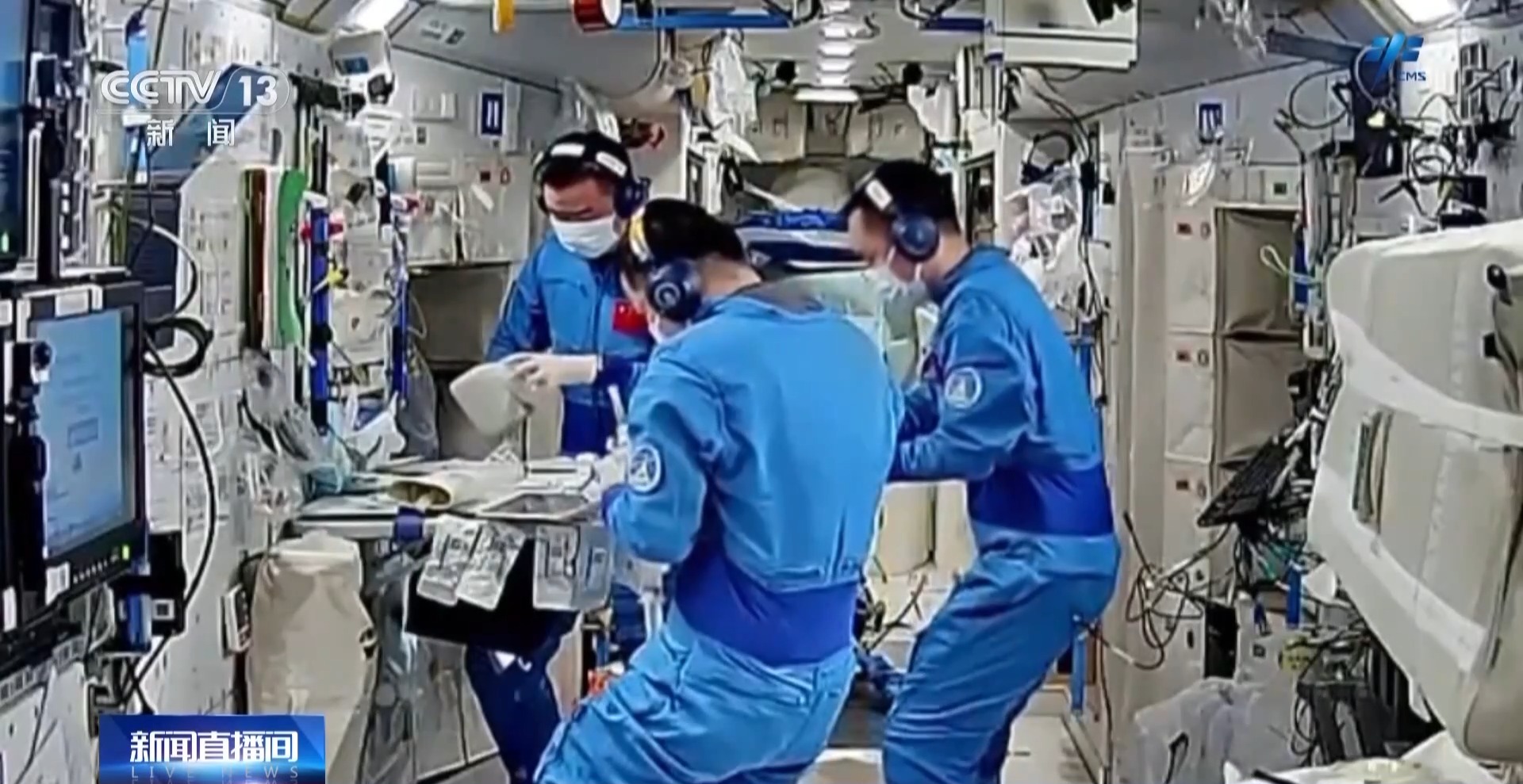 在站务管理方面,乘组完成了问天气闸舱、梦天实验舱内货包及舱外服转移整理,药品清点及物资管理相关工作。