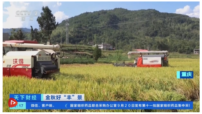 西南多地水稻收割已近尾声。重庆水稻收获超九成。今年,当地通过良种、良技、良机、良法多管齐下,预计全年粮食面积、单产、总产有望实现“三增”。