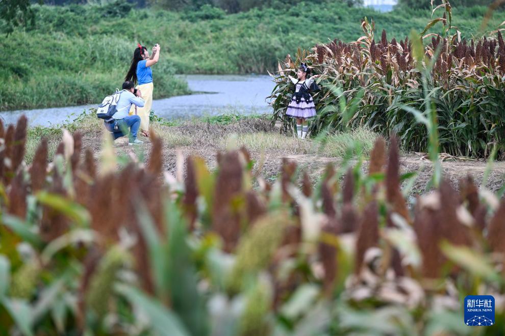 近日,江苏农垦江心沙农场位于常州金坛长荡湖和钱资湖畔外拓基地的8000余亩高粱陆续成熟,迎来采收季。成片的高粱映红田野,游人在安全地带打卡拍照,远处收割机来回穿梭,呈现出生动喜人的丰收图景。据介绍,该基地位于金坛“陌上花开”生态环境整治项目地段内,经过多年努力,“农业+旅游”现代都市近郊农业公园雏形初现。(新华社 记者季春鹏)