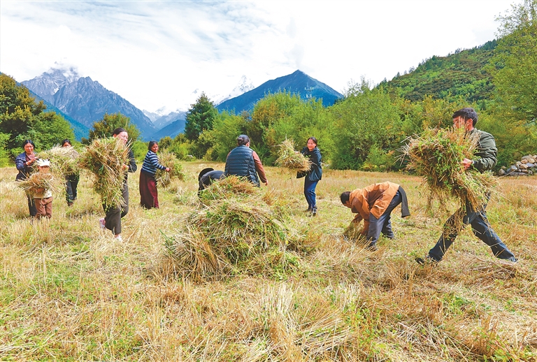 林芝市工布江达县错高乡结巴村村民秋收场景。本报记者白玛泽旺 次仁平措摄