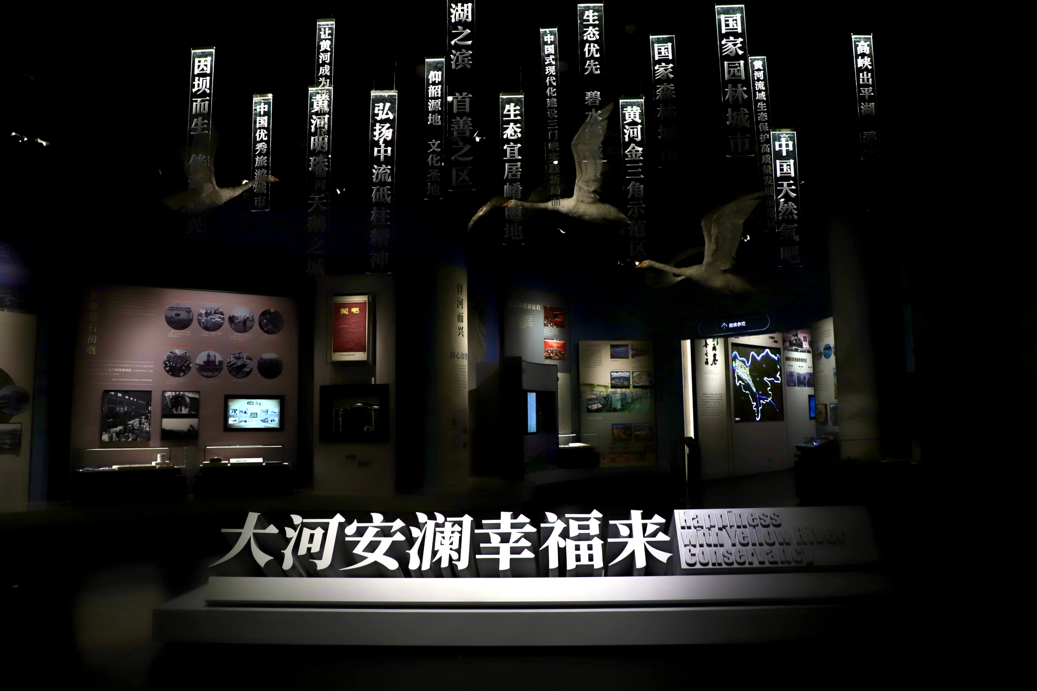 博物馆共分三个展厅。第一展厅“屹如砥柱立中流”通过场景复原展现砥柱石地理特征与历史文化内涵,第二展厅“万里黄河第一坝”运用AR增强现实推拉屏技术解析三门峡大坝建设历程;第三展厅“大河安澜幸福来”借助互动沙盘演示黄河流域生态保护成效。
