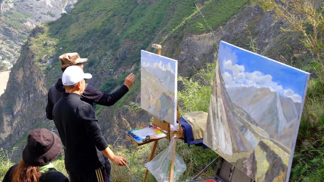其中,“引进来”部分活动,于9月20日至27日开展,为期8天。期间,邀请了中国美术馆研究馆员、博士后工作站导师王雪峰,山东省青年美协副主席、山东画院青年画院副院长、山东师范大学当代水墨研究中心研究员孙春龙,中国艺术研究院博士、中国美术家协会会员、中国艺术研究院艺术培训中心导师聂松,以及南开大学东方艺术系美术学硕士、中国艺术研究院访问学者、李可染画院青年画院画家高堃等四位国画家,前往丽江古城、玉龙雪山、玉湖、黑龙潭等地,对来自保山市、临沧市、德宏州、怒江州、迪庆州及丽江市一区四县的30名美术从业者开展写生创作培训。