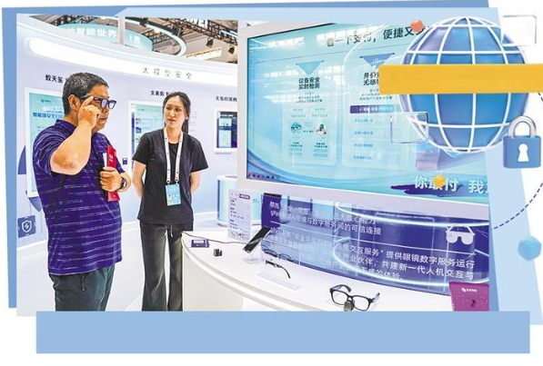 观众在云南昆明举行的2025年国家网络安全宣传周配套活动上体验智能眼镜。