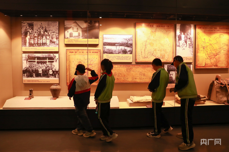 参观学生在认真观看展陈(央广网见习记者 苏睿楠 摄)