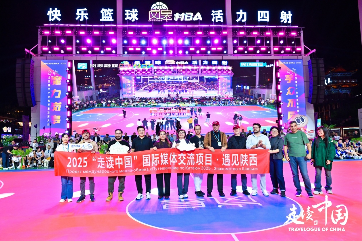 9月19日,2025“走读中国”国际媒体交流项目来自俄罗斯、哈萨克斯坦、白俄罗斯、乌兹别克斯坦、格鲁吉亚等11个国家的12位外媒记者与国内主流媒体记者组成联合采访团,走进赛场,与观众互动,甚至上场游戏切磋,亲身感受“村BA”的热烈氛围。