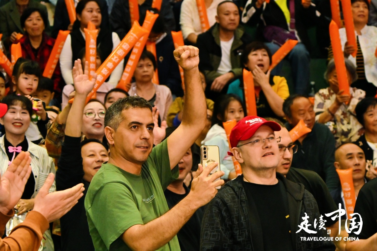 赛场内球员奋力拼搏,观众席欢呼不断;场馆外的星光夜市与富硒美食街同样人潮涌动,洋溢着欢乐氛围。外国记者们也沉浸其中,随着场边的鼓点声挥舞充气棒,不论场上谁输谁赢,都为精彩赛事呐喊助威。