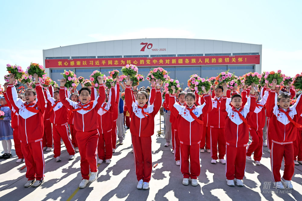 中共中央总书记、国家主席、中央军委主席习近平率中央代表团23日下午乘专机抵达乌鲁木齐,出席新疆维吾尔自治区成立70周年庆祝活动。习近平等在机场和乌鲁木齐市区受到新疆各族群众的热烈欢迎。