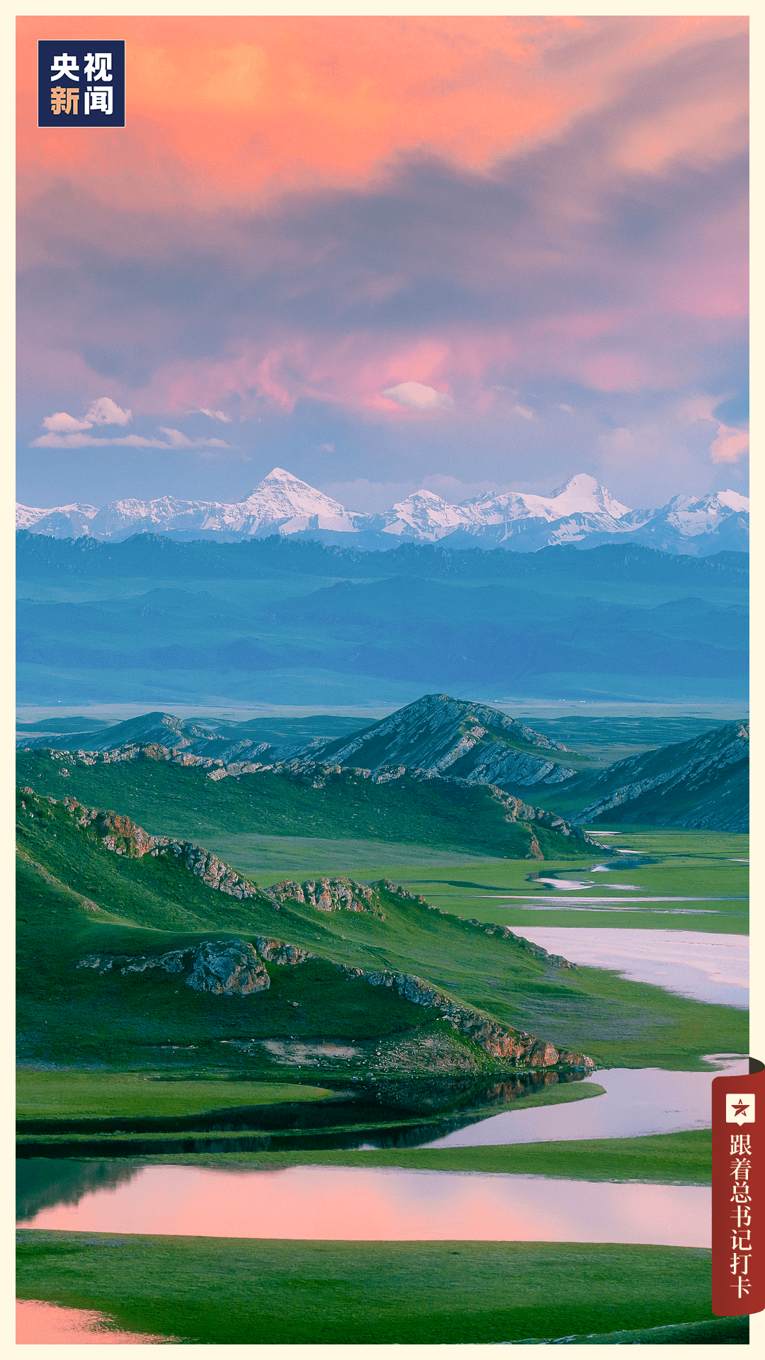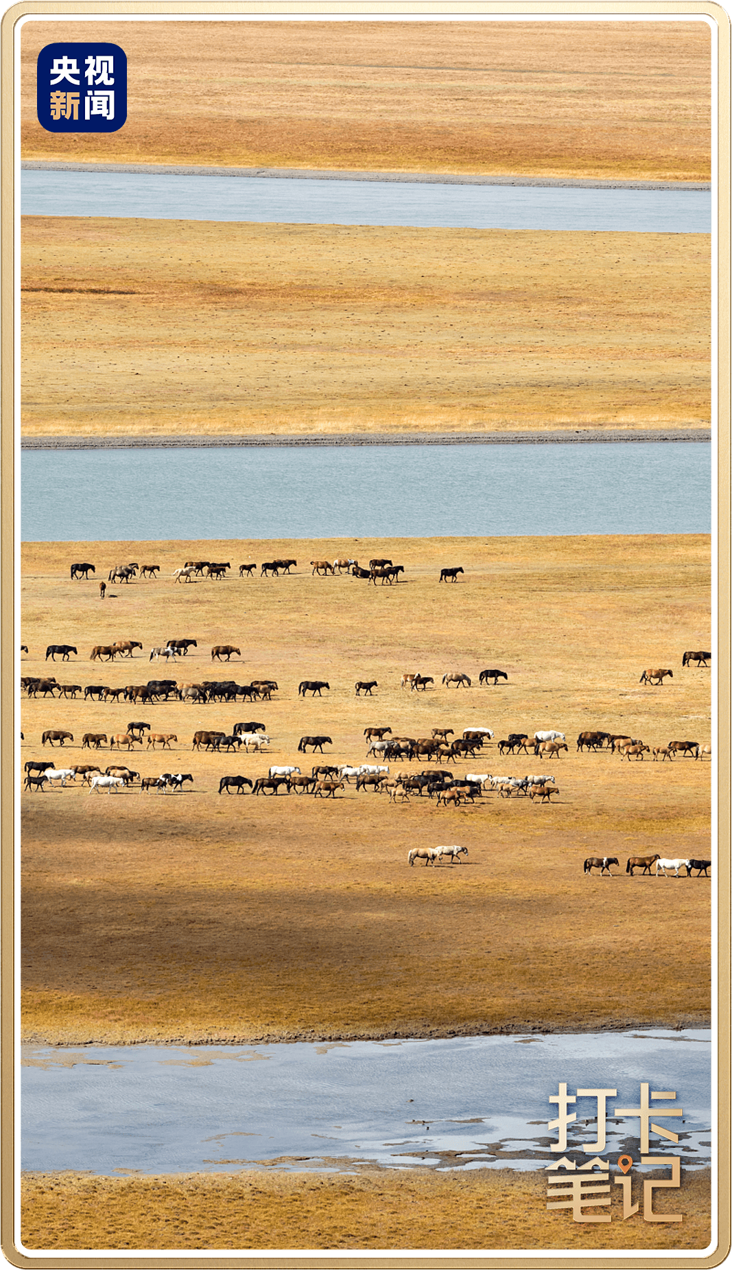 秋天,当霞光照亮天边的云彩和雪山,动物们像丝绒上散落的珍珠,整个画面悠远而宁静。