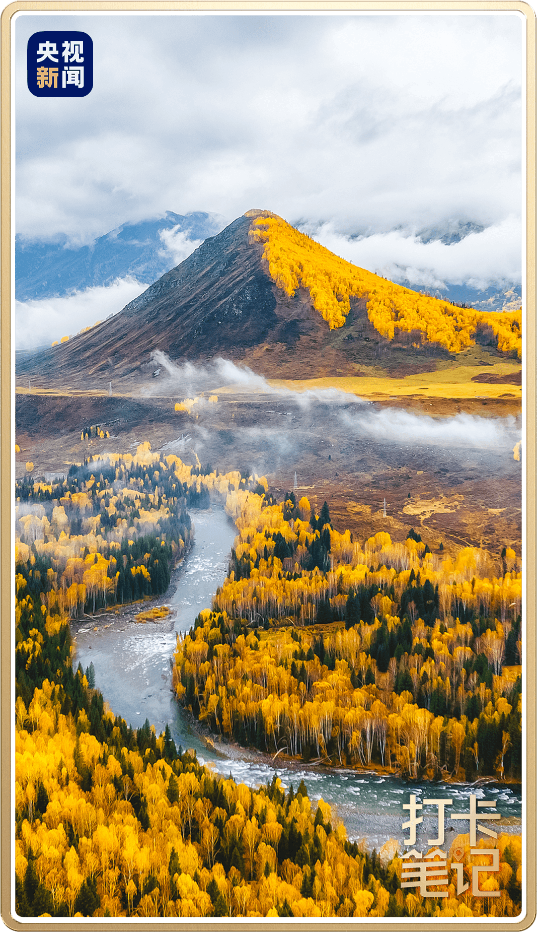 进入秋季,喀纳斯被金黄的白桦叶、常绿的松柏和焰红的枫叶包裹,万物化身色彩搭配的高手。