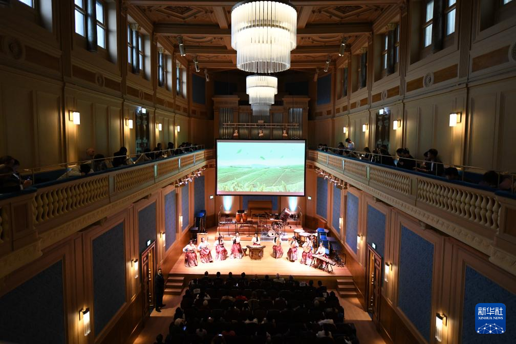 9月23日,在瑞士日内瓦,表演者在2025年“天涯共此时——中秋节”文艺晚会上演奏音乐。