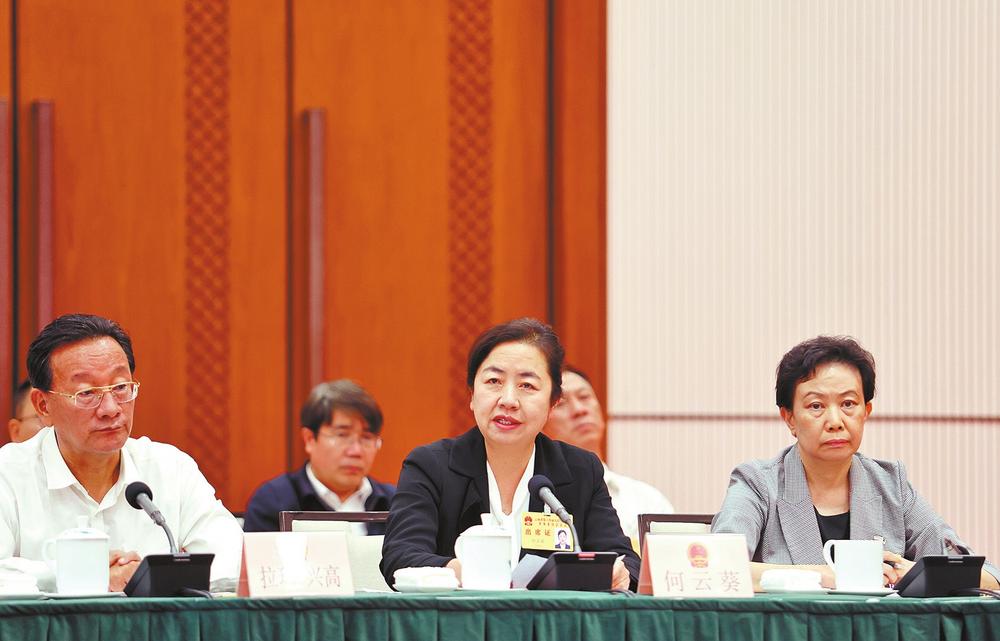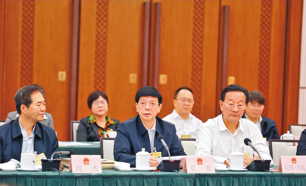 常委会组成人员在会上开展询问。 本报记者 黄兴能 摄