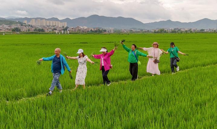 游客在鲁甸县感受田园风光。通讯员郭家龙 摄