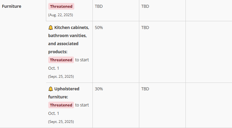 特朗普还宣布自10月1日起,对厨房橱柜、浴室洗手台及相关建材征收50%关税,美国劳工统计局数据显示,受关税政策影响,2025年8月美国市场家具价格同比上涨4.7%。