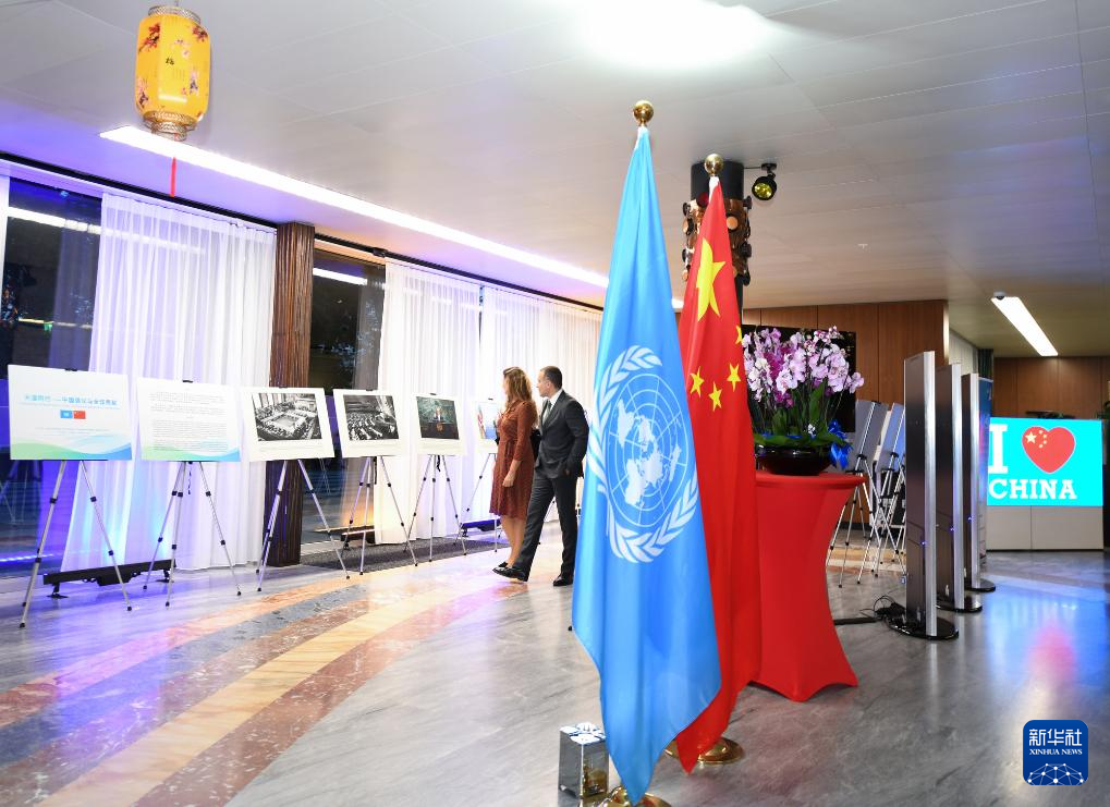 9月25日,嘉宾在位于瑞士日内瓦的世界知识产权组织总部大厅参观“大道同行——中国倡议与全球贡献”图片展。新华社记者 连漪 摄