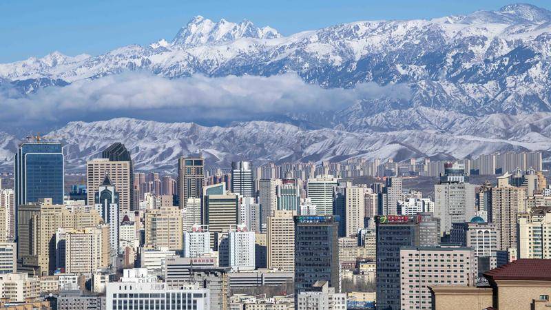 天山脚下的乌鲁木齐市城区一角(2022年3月30日摄)。