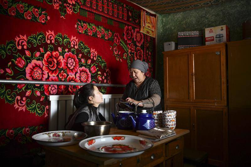 父辈把牧鞭传到手中,巴哈提和勤恳的丈夫哈布得拉什么·努素普别克日复一日劳作,家底逐渐殷实。牛羊马匹渐多,夫妻俩把石块和牛粪垒起来的棚圈扩了又扩。
